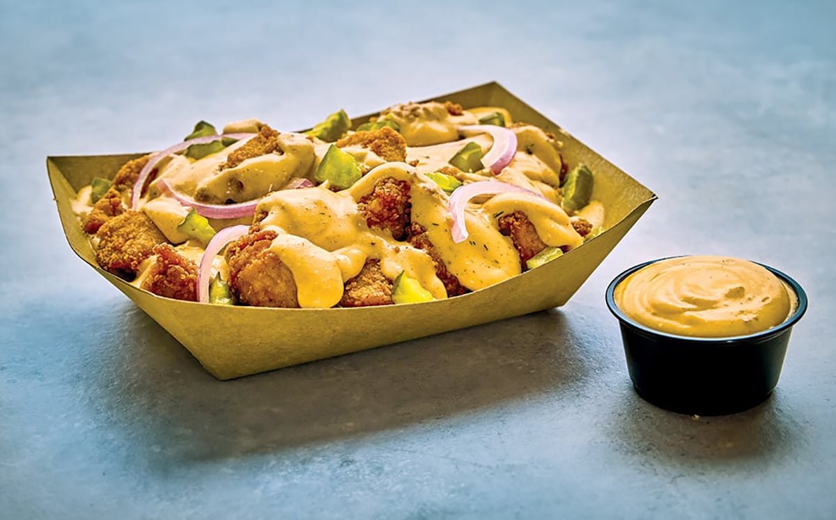 “Our white cheddar or yellow cheddar cheese sauces can be the perfect starting point for crafting unique, craveable flavors,” says Gable. For example, use Muy Fresco® Monterey Jack Cheese Sauce as a base and elevate it by incorporating hot sauce, dill weed, pickles and other ingredients to create a delicious drizzle over top hot breaded chicken nuggets for Loaded Nashville Hot Nuggets. “This allows you to control the spice level and add a layer of complexity, giving your customers a perfect balance of heat and creamy texture.”